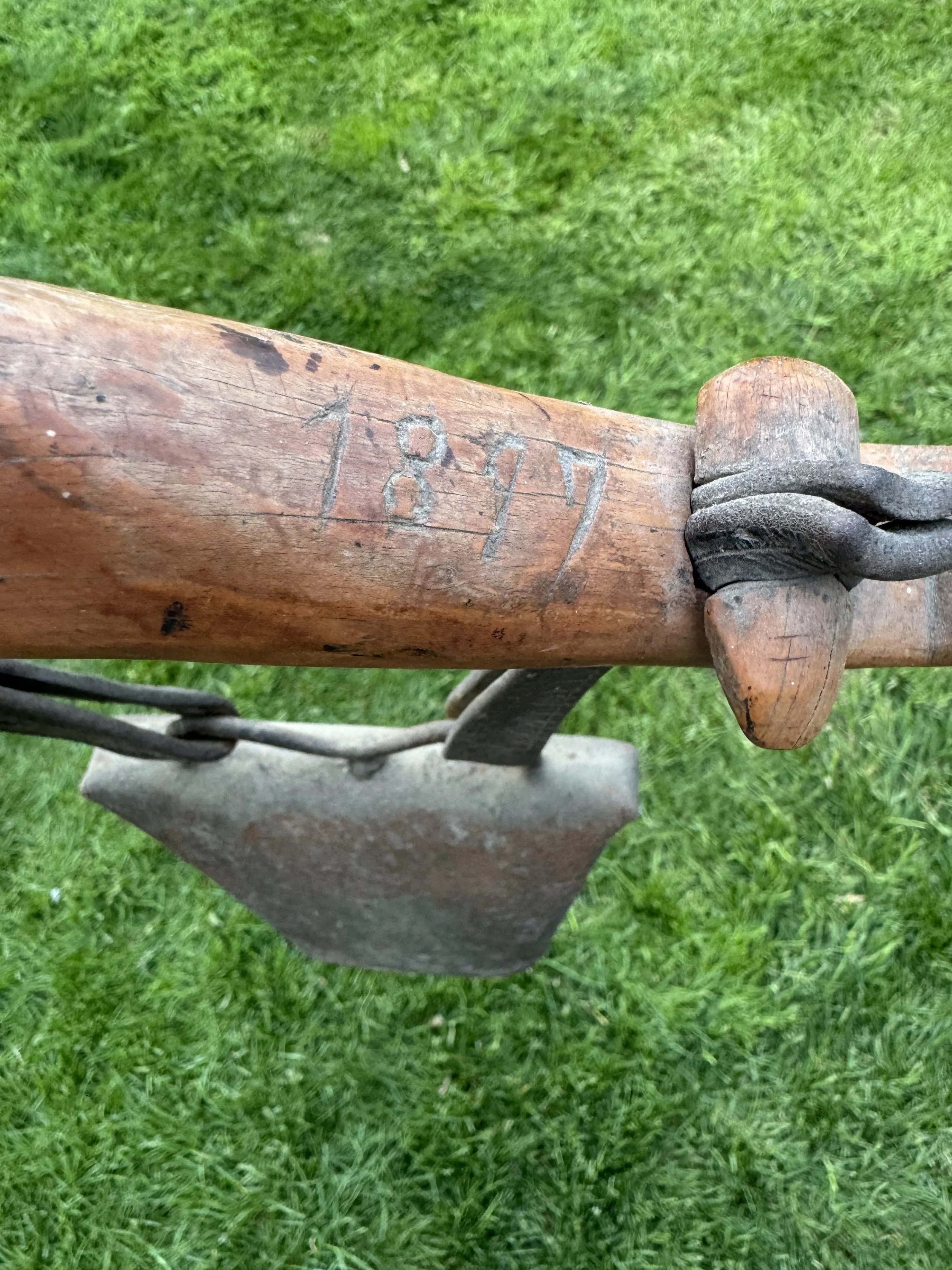 The bell itself is carved with the date 1877 and the initials HR. Whoever that was, I like to imagine he (or she) walked the chalk downs above the Wylye Valley with a few hundred Dorset ewes, and a dog that knew its business. There’s something in the heft of the bell that speaks of labour, of honest days and cold mornings, of lanolin-slick fingers and the wind off Salisbury Plain. The clapper still rings, sharp and metallic, a sound that would carry far over heather and bracken. It’s a sound that sheep come to know: half warning, half lullaby.