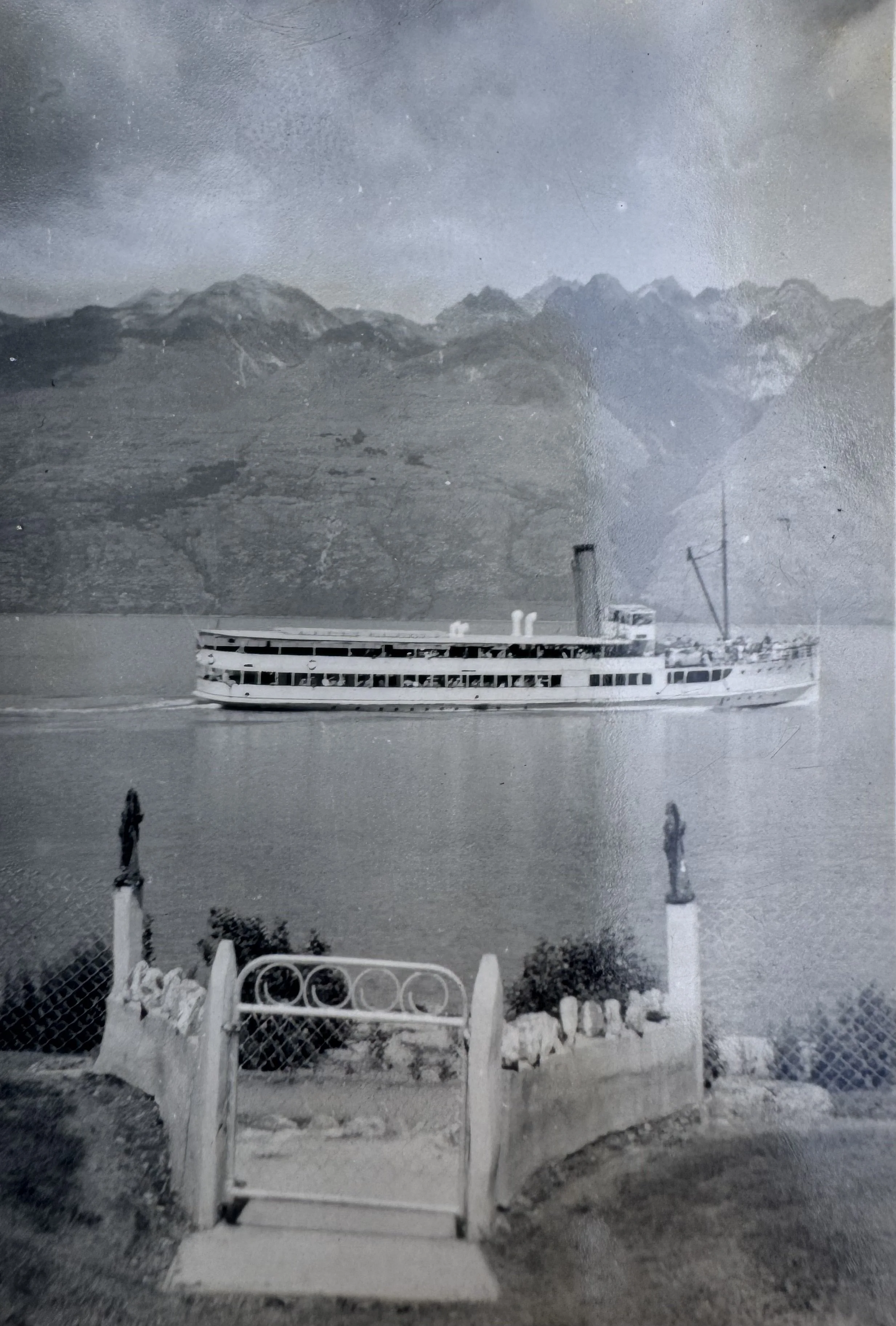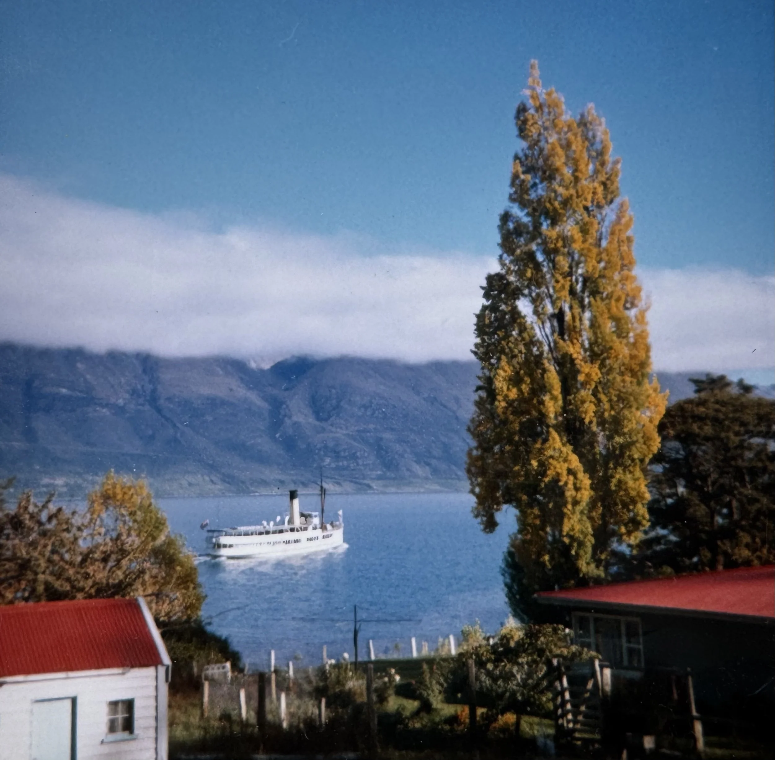 And then she’d go. The Earnslaw. Her whistle echoing off the hillsides, her steam engine churning the propeller steadily through the green-blue water, a white wake trailing behind her like a ribbon. You could track her progress from the ridgeline above: just a speck of white hull and curl of black smoke slipping down past Pig Island, toward Kingston and the wider world.